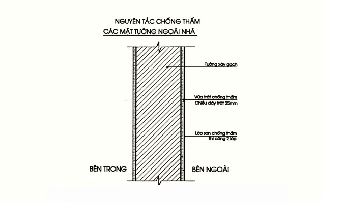 – Không sử dụng chất chống thấm tường làm bề mặt bên ngoài.